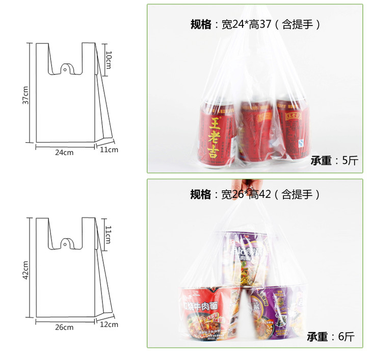 外賣背心袋尺寸是多少?這樣的一般都是pe袋。一般分為高壓或者低壓的,這個是根據(jù)客戶的喜愛選擇的。尺寸還有材料的厚度是根據(jù)客戶產(chǎn)品的需要定制的。