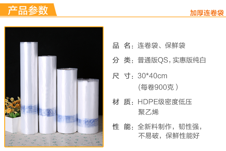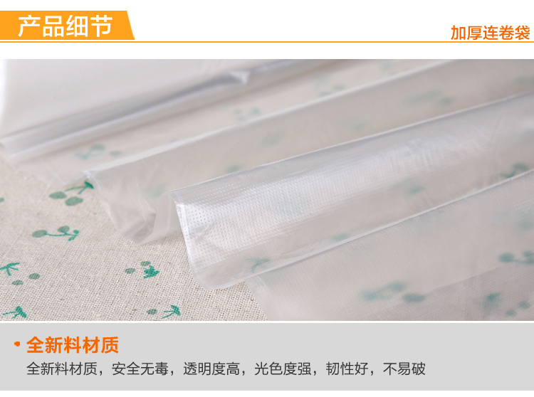由于連卷袋需要連接,所以一般以低壓塑料為主,這樣在分離每個袋子的時候就更好的保留了每個袋子的完整性,不容易造成浪費。