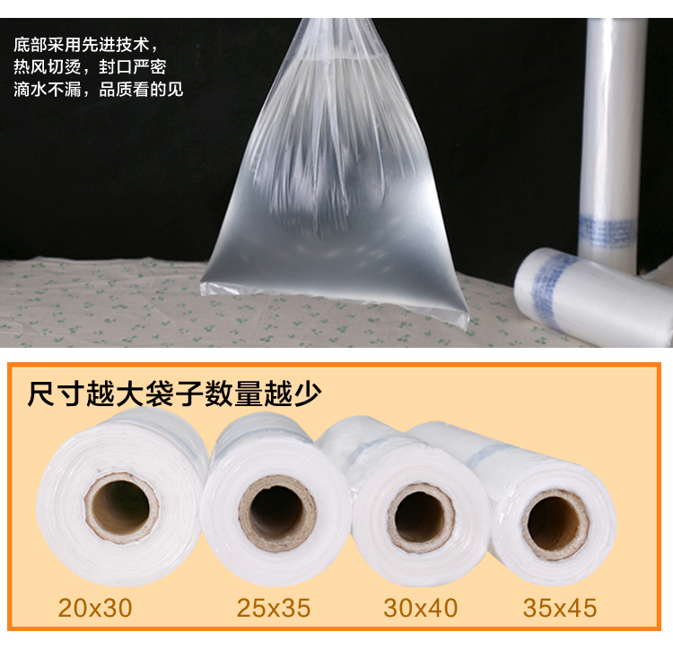 連卷袋:顧名思義就是連接在一起的袋子,每一個袋子首尾相連,一卷成型,這樣既方便使用,又方便包裝,袋子與袋子之間雖連接,但是屬于虛線,輕輕一拉就能分離。