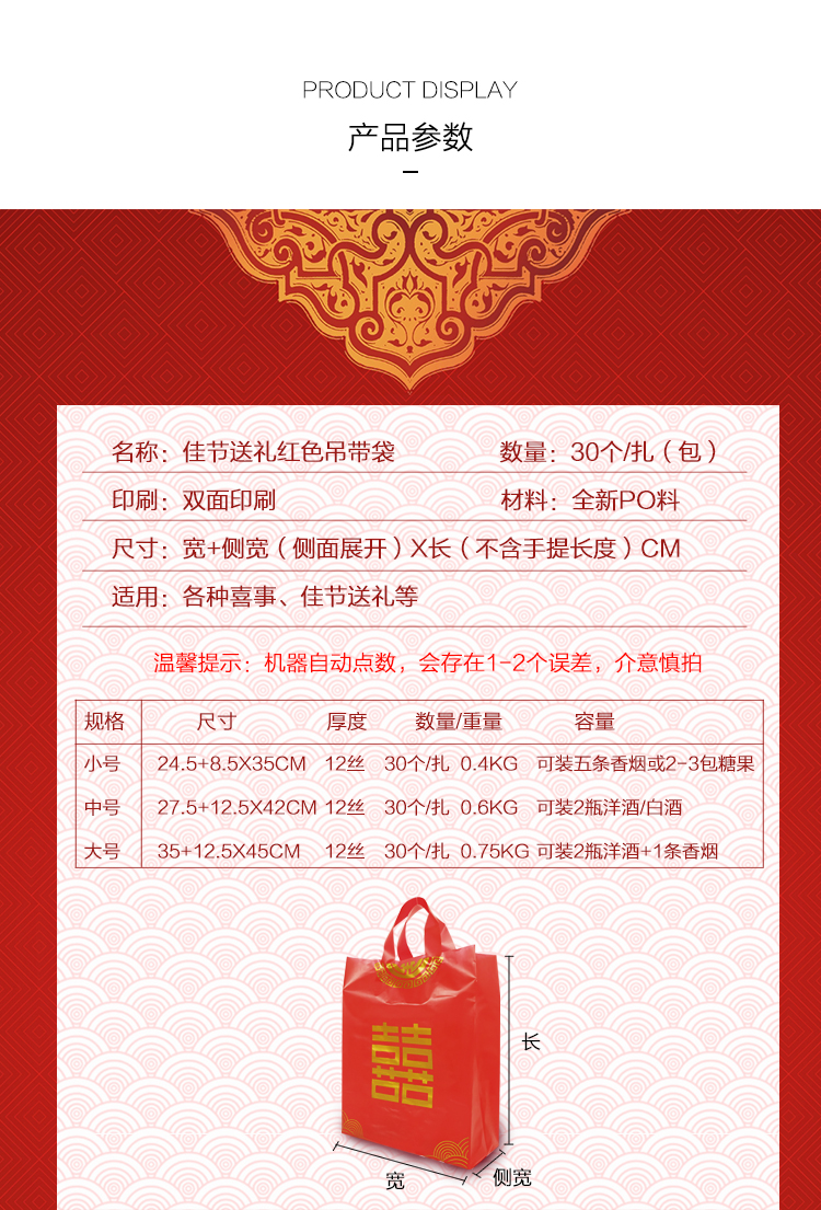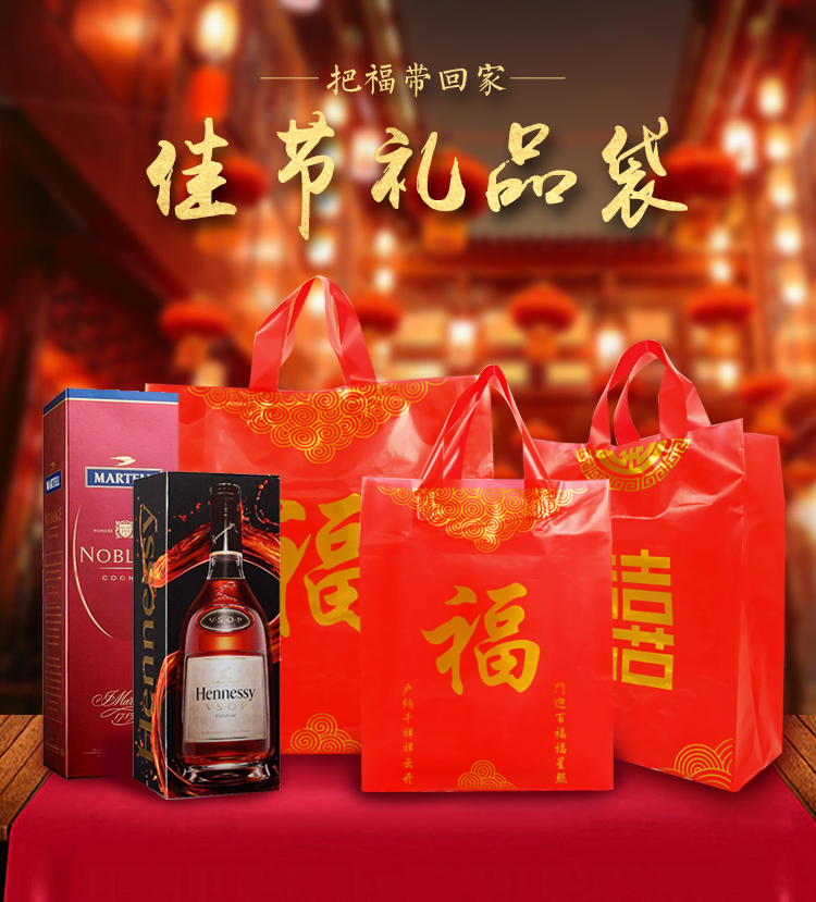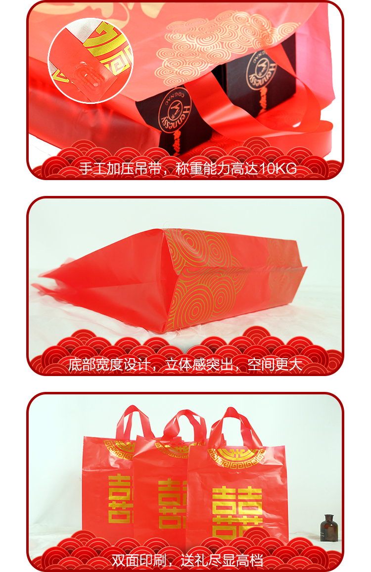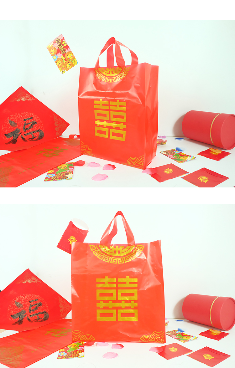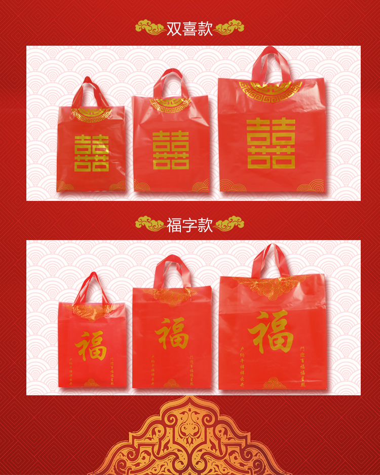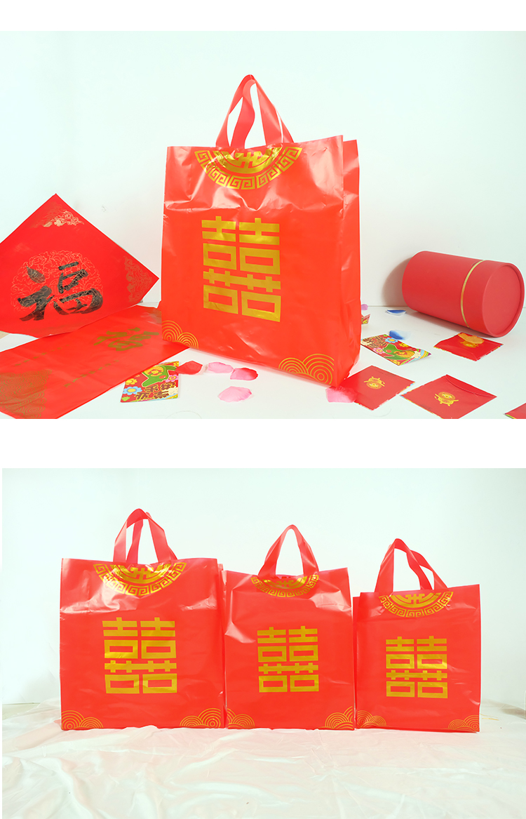 • 送禮結婚喜慶紅色福喜字手提袋子裝酒的大中小
